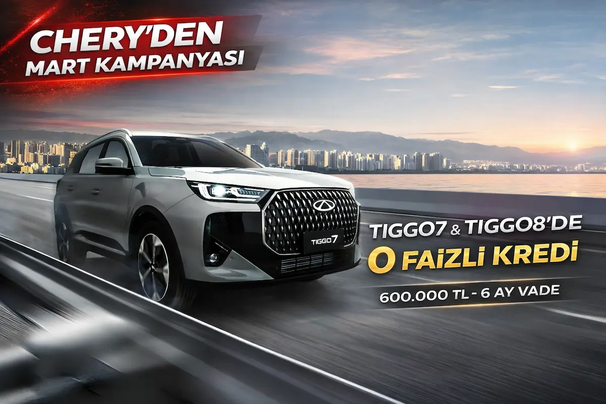 Chery Türkiye, TIGGO7 ve TIGGO8 modellerinde mart ayına özel 600 bin TL’ye 6 ay vadeli sıfır faizli kredi kampanyası başlattı.