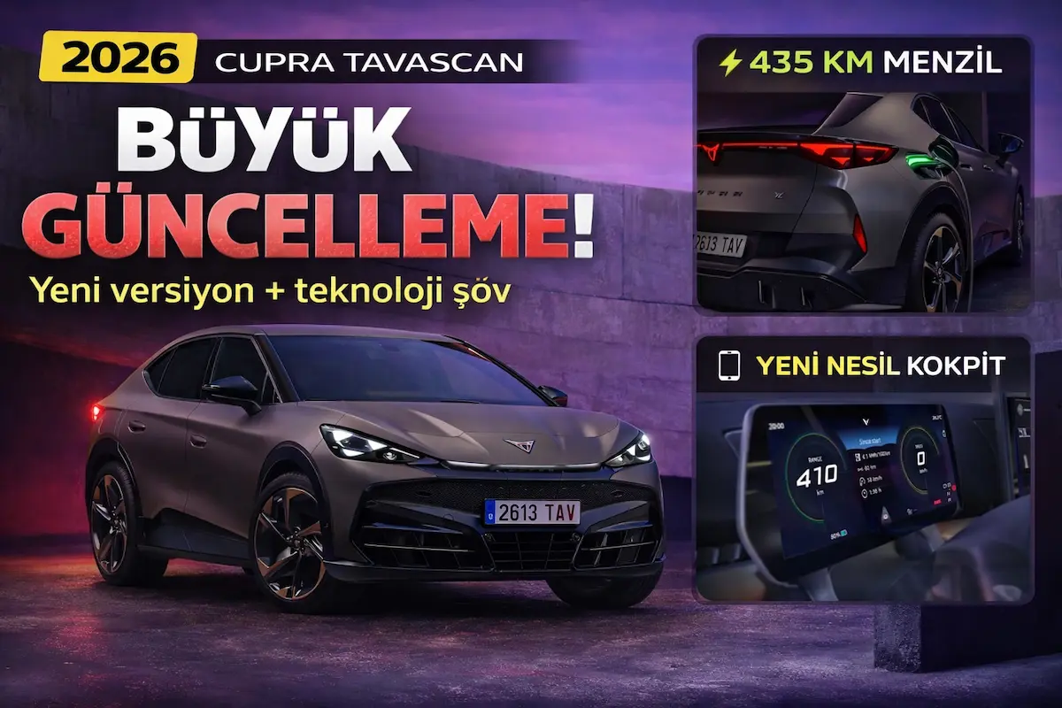 CUPRA Tavascan 2026 güncellendi. Yeni giriş seviyesi versiyon, gelişmiş dijital kokpit ve V2L teknolojisiyle model daha güçlü hale geldi.