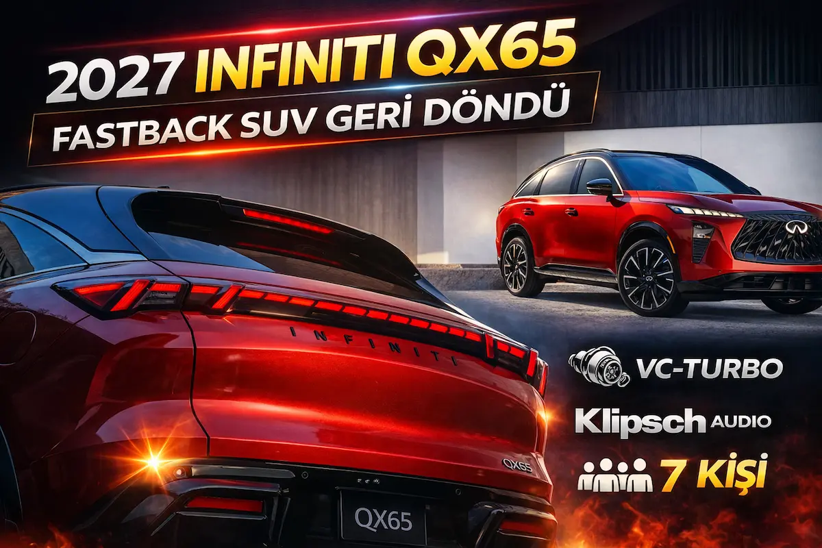 2027 INFINITI QX65 sahneye çıktı. Efsanevi FX serisinin genlerini taşıyan yeni Fastback SUV modelinin dikkat çeken VC-Turbo motoru, tasarımı ve tüm teknik detayları haberimizde.