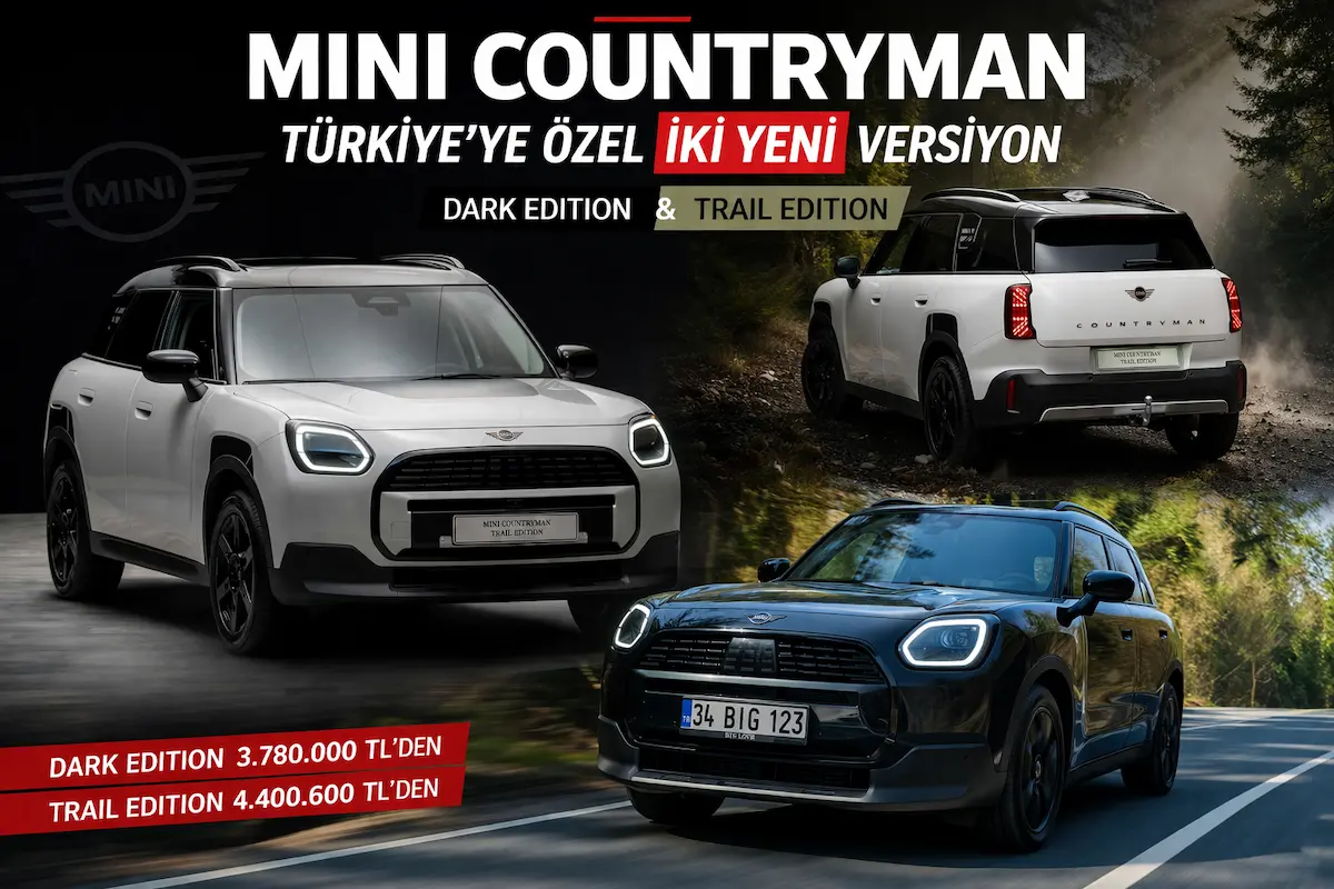 MINI, Countryman model ailesini Türkiye pazarı için geliştirilen iki yeni versiyonla genişletti. Borusan Otomotiv distribütörlüğünde satışa sunulan Dark Edition ve Trail Edition, sınırlı sayıda üretilerek yetkili satıcılarda yerini aldı.